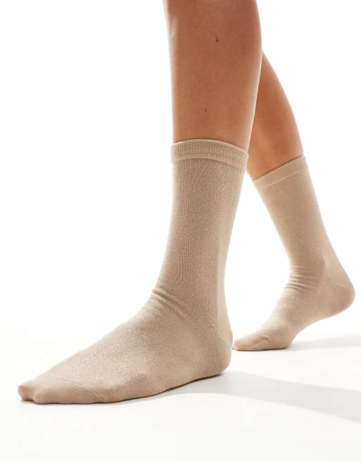 Calcetines color crema con efecto purpurina de Selected Femme