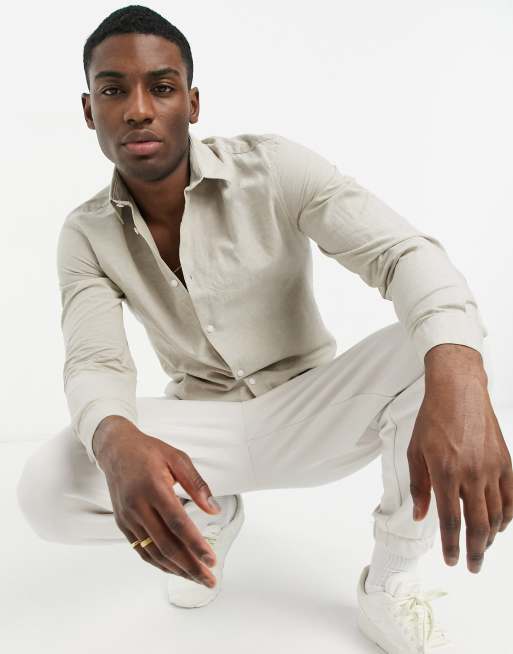 Camisa beis de lino de Selected Homme
