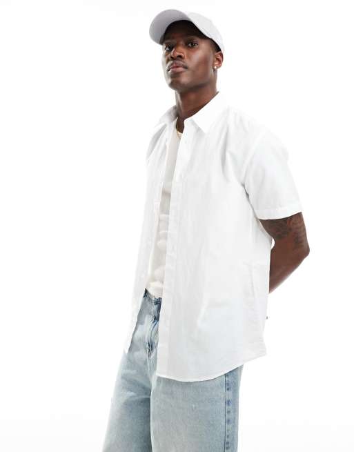 Camisa blanca de manga corta de mezcla de lino de Selected