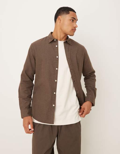 Camisa marrón de corte cuadrado extragrande de tejido cepillado 100% de algodón de Selected