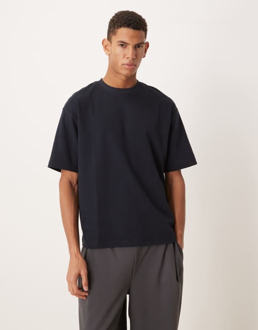 Camiseta azul marino de corte cuadrado extragrande de 100% algodón de Selected