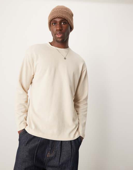 Camiseta color crema extragrande de manga larga Oscar de Selected