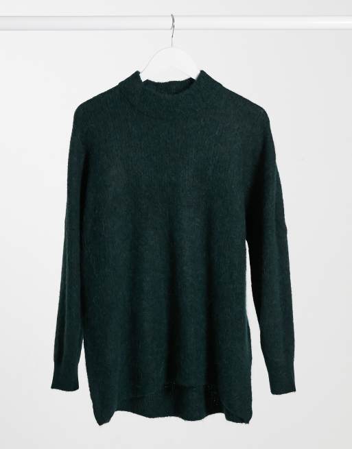 Jersey con cuello alto de punto cepillado en verde de Selected Femme