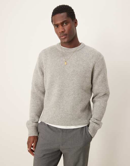 Jersey gris extragrande con cuello redondo de punto de Selected