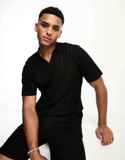 Polo negro con cuello de solapas de punto de Selected Homme