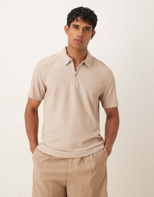 Polo tostado plisado con media cremallera de Selected
