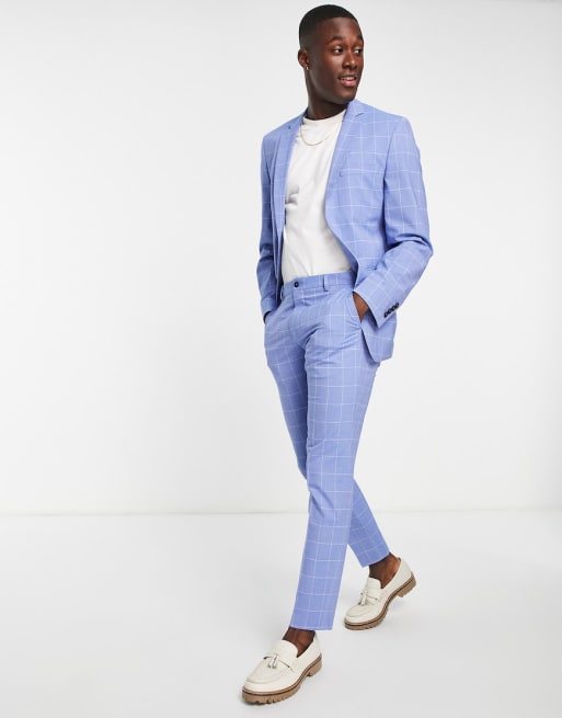 Traje azul a cuadros de corte slim de Selected Homme