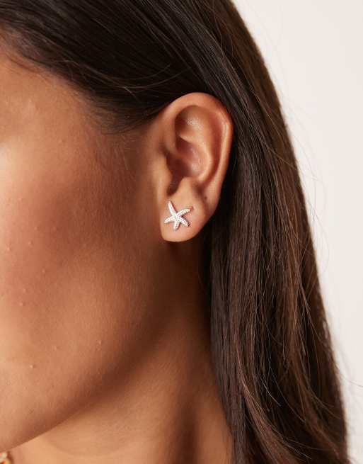 Pendientes de botón con diseño de estrella de mar texturizada de plata de ley de Seol + Gold