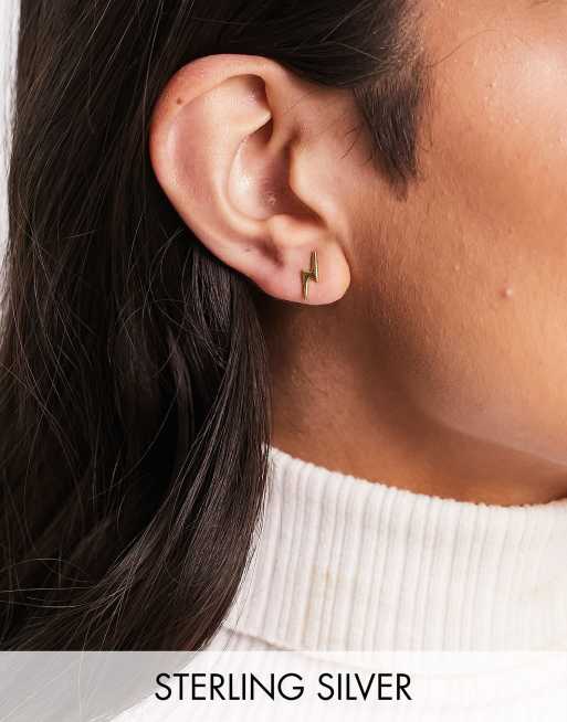 Pendientes de botón con diseño de rayo de oro vermeil de 18 quilates de Seol + Gold