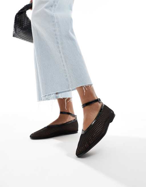 Bailarinas negras de malla con hebilla Arosa de SEQWL Wide Fit