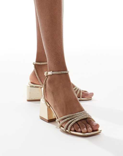 Sandalias doradas de tacón grueso con diseño de tiras de SEQWL Wide Fit