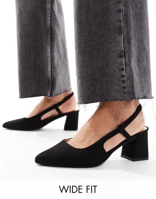 Zapatos negros de tacón en bloque con correa talonera y puntera fina de SEQWL Wide Fit