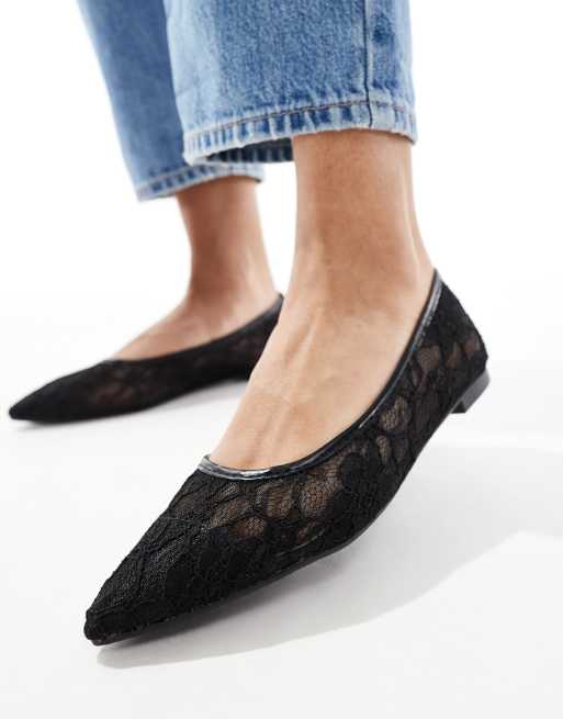 Bailarinas negras con puntera fina de encaje de SEQWL