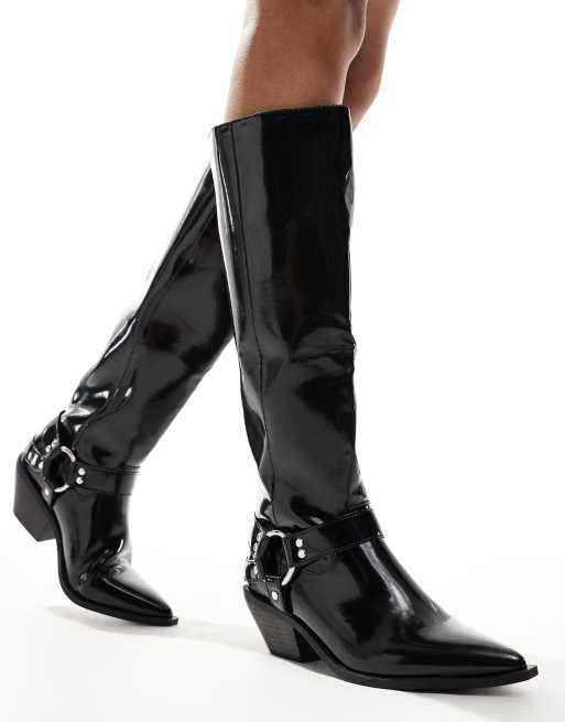 Botas por la rodilla negras de estilo wéstern de SEQWL