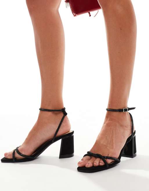 Sandalias negras de tacón medio en bloque con correas adornadas de SEQWL