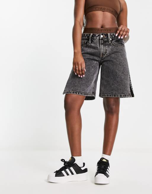 Pantalones cortos vaqueros gris lavado largos hasta la rodilla con laterales abiertos de Signature 8