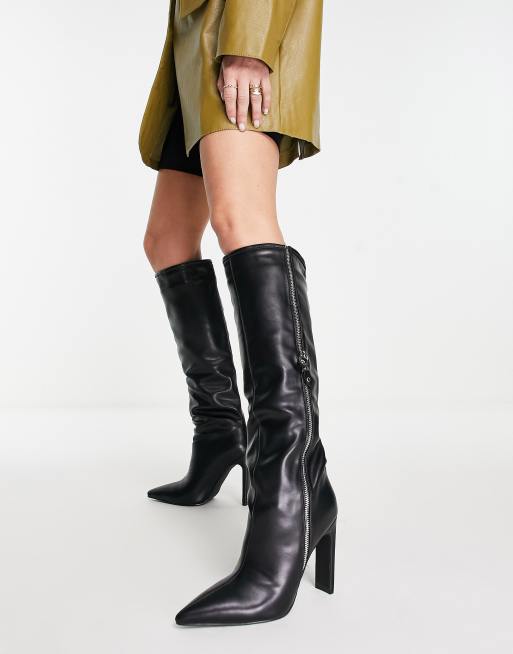 Botas negras por la rodilla con tacón y cremallera a la vista de SIMMI London