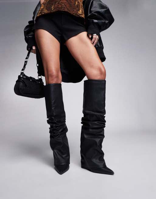 Botas por la rodilla negras fruncidas con detalle plegado Leif de SIMMI