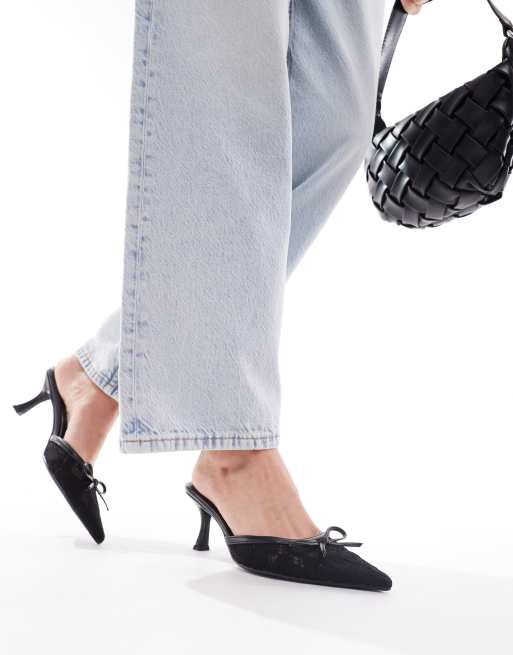 Mules de tacón bajo con puntera fina y detalle de lazo Ailla de SIMMI London