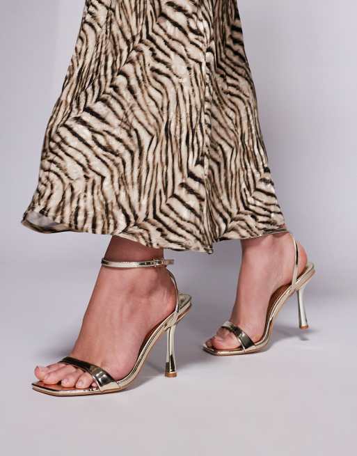 Sandalias doradas de tacón medio con diseño de tiras Dola de SIMMI London Wide Fit
