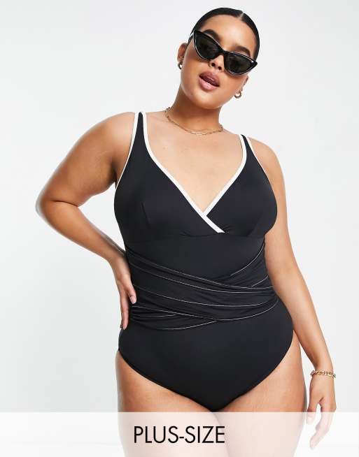 Bañador negro con detalle retorcido en la parte delantera Magisculpt de Simply Be