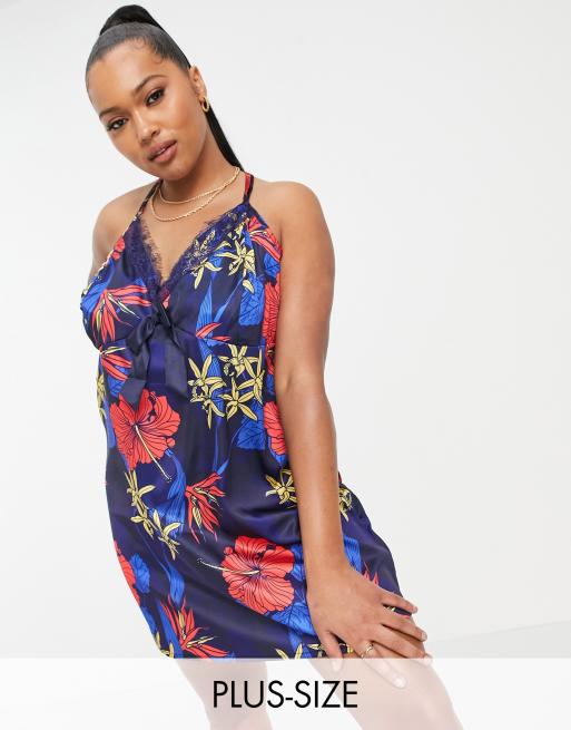 Camisola con estampado floral tropical y espalda cruzada Pretty Secrets de Simply Be
