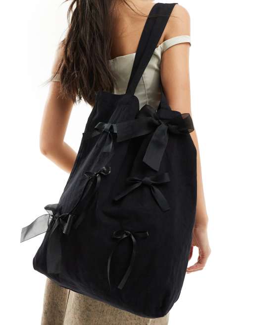 Bolso tote negro de hombro con lazos de adorno de sister jane