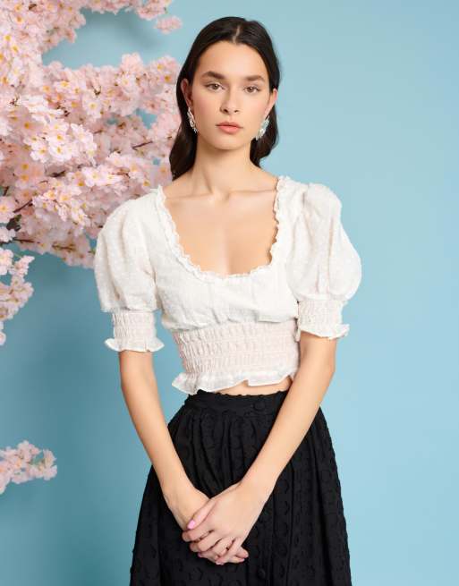 Top corto blanco marfil fruncido con detalle de lazada de Sister Jane