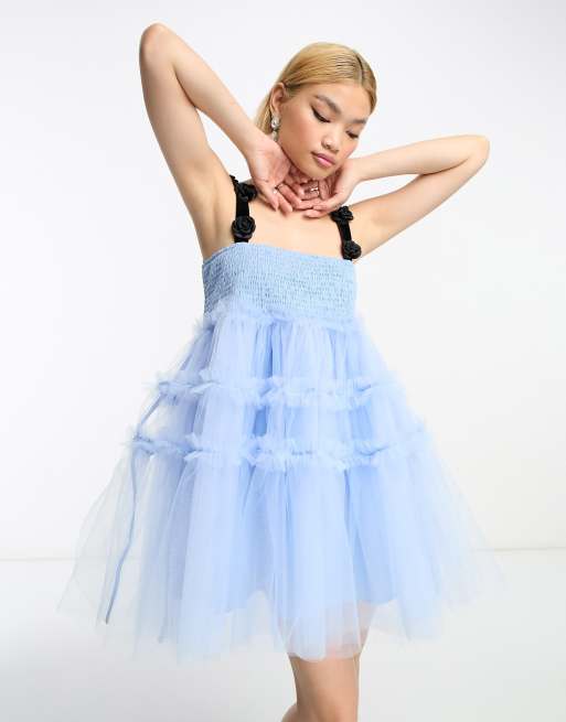 Vestido corto azul pastel con tirantes estilo ramillete de tul Dream de sister jane