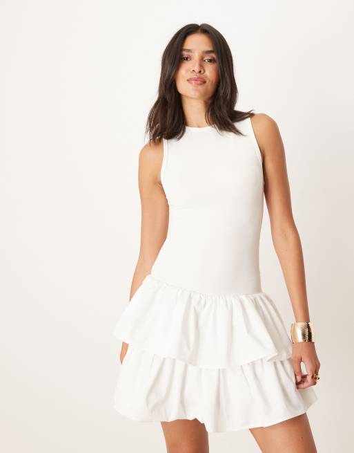 Vestido corto blanco marfil con volantes en la falda de canalé de Sister Jane