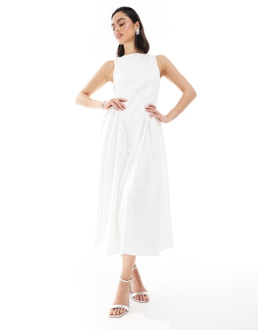 Vestido de novia semilargo blanco marfil con cintura baja de Six Stories