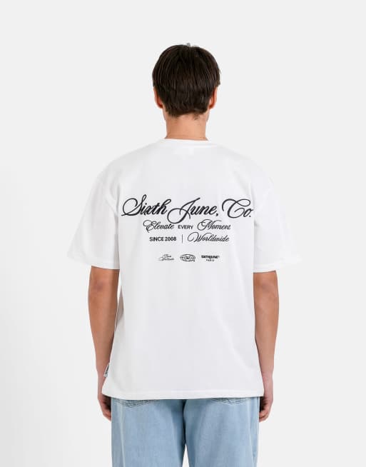 Camiseta blanca de manga corta con bordado "Elevate" de Sixth June