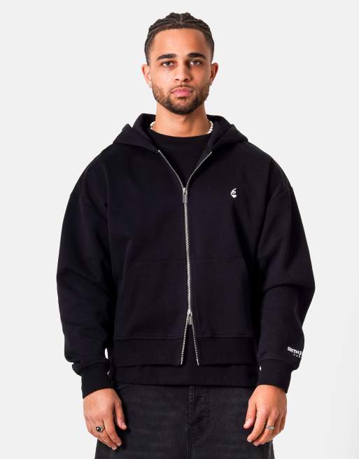 Sixth June - Sudadera negra con capucha, cremallera y bordado de corazón
