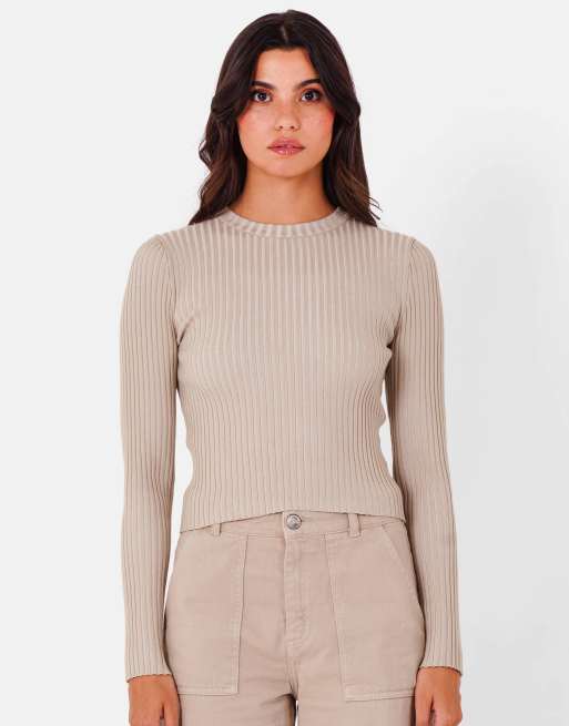 Top beis de manga larga con diseño bicolor de Sixth June