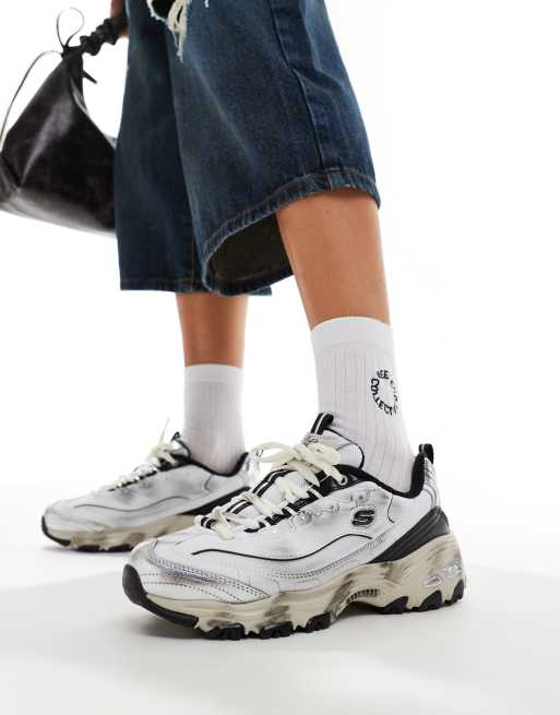 Zapatillas de deporte plateadas con detalle de cincha superpuesto y efecto desgastado D'Lites de Skechers