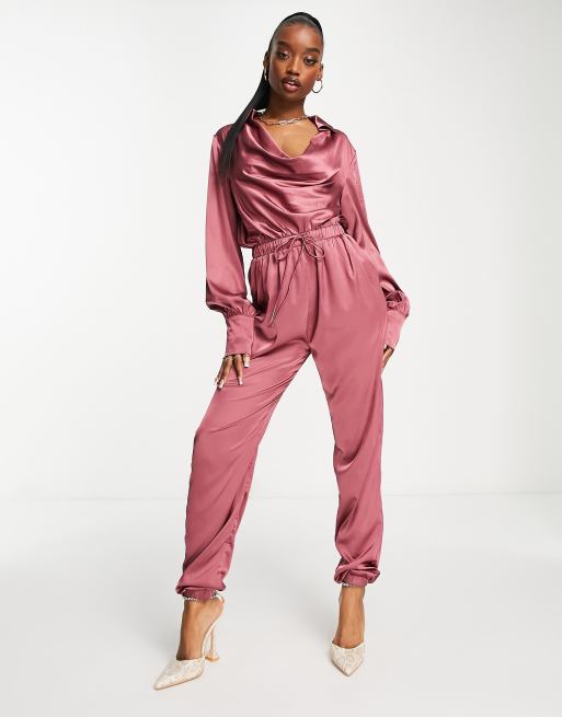 Mono largo rosa negruzco con parte delantera drapeada de satén de Skylar Rose