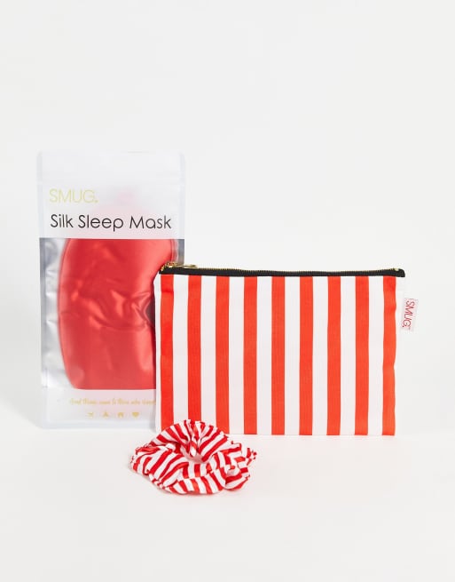 Set rojo de coletero abullonado, antifaz para dormir y bolso de Smug
