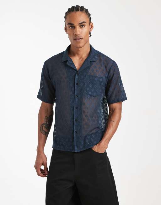 Camisa playera azul marino con bordados de croché de Sol Beach