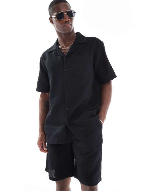Pantalones cortos playeros negros de tejido gofrado de Sol Beach