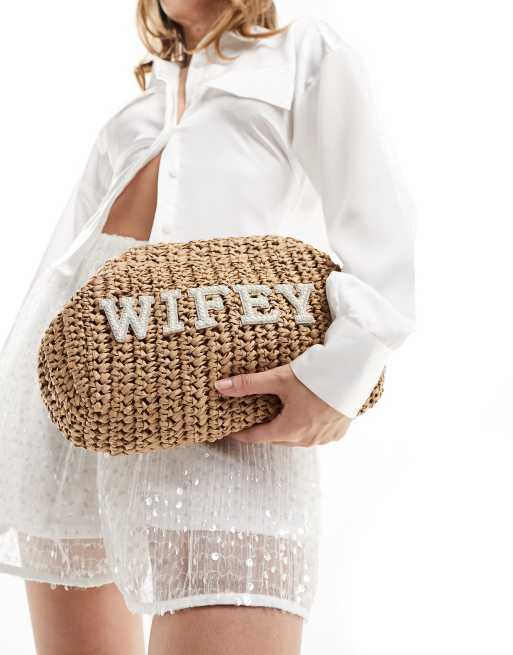 Bolso clutch de novia con adorno de perlas "Wifey" de South Beach