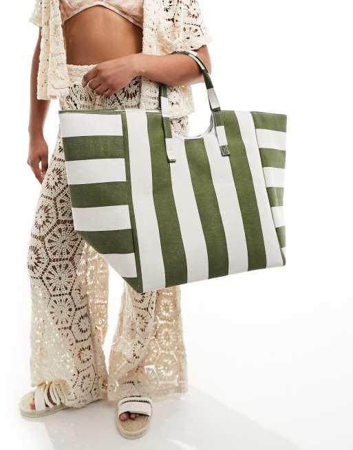 Bolso tote de hombro a rayas caquis extragrande de South Beach