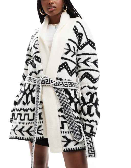 Cárdigan monocromático con patrón de jacquard y lazada en la cintura de punto de South Beach