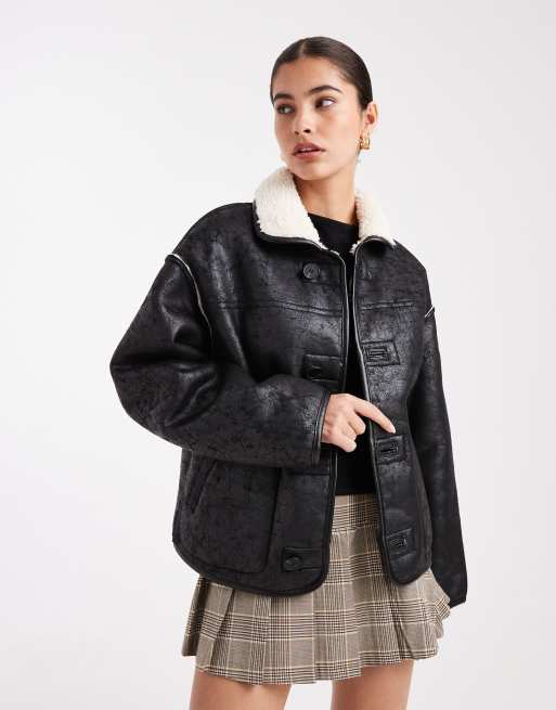 Chaqueta monocromática reversible de poliuretano con botones y forro de borreguito de South Beach