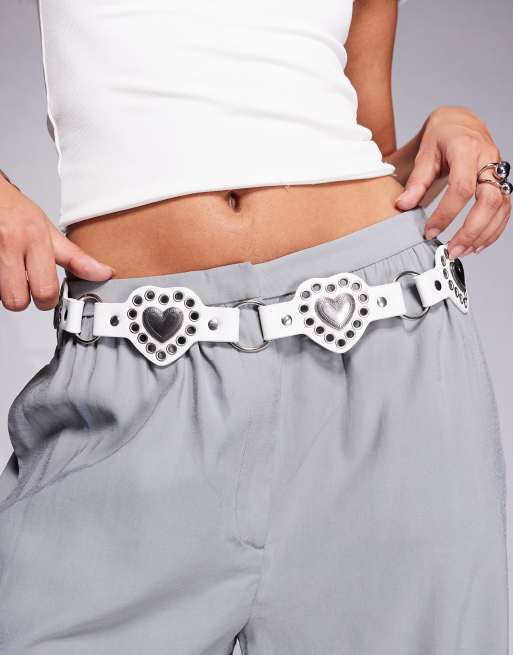 Cinturón blanco con diseño de corazones y flecos de South Beach