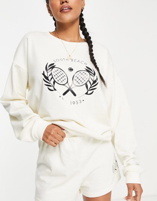 Conjunto blanco de sudadera y pantalones cortos con logo de tenis de South Beach