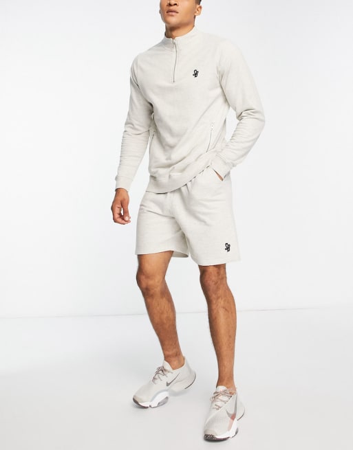 Conjunto de sudadera color crema con cremallera corta y parte inferior a juego de South Beach