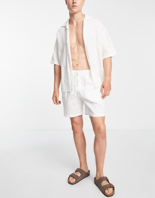 Conjunto playero blanco a rayas de mezcla de lino de South Beach