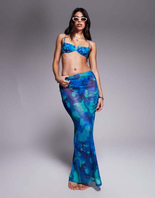 Falda playera larga azul con estampado difuminado de malla de South Beach