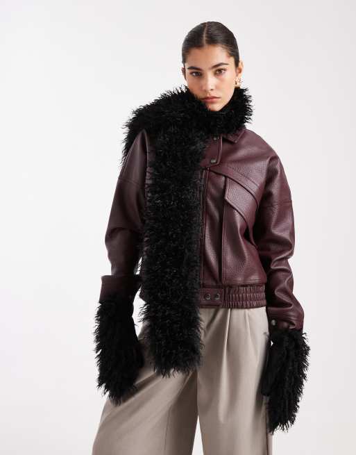Set negro de bufanda y manoplas de piel sintética alargada de South Beach