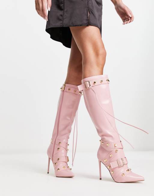 Botas por la rodilla rosas con correas y tachuelas Finkle de Steve Madden